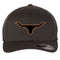 Longhorn Leatherette Patch 6 Panel Mid Profile Flexfit Closed Back Twill Caps for men and women. From Small to 2XL Big Size.